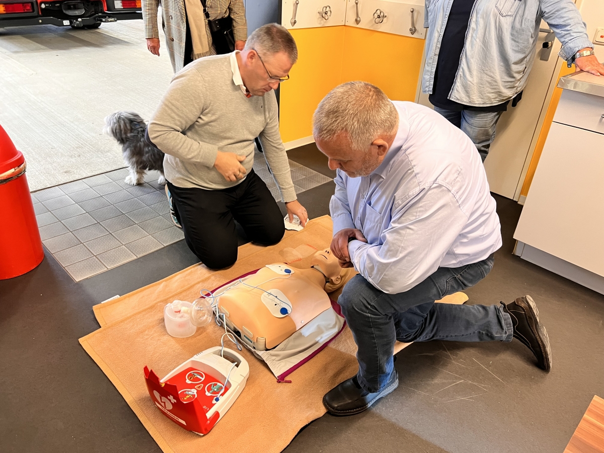 Nachdem der offizielle Teil der Sitzung erledig war, durften alle Teilnehmenden sich ein eigenes Bild von einigen Anschaffungen machen. Jeder konnten den Feuer-Trainer mit dem Feuerlöscher bezwingen sowie mit der Reanimationspuppe mit Defibrillator ein Training absolvieren. Im Nachgang wurde gemeinsam ein kleiner Imbiss genossen und nette Gespräche geführt.